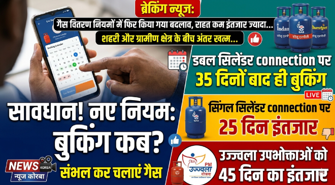 कोरबा | न्यूज़ डेस्क रसोई गैस उपभोक्ताओं के लिए एक जरूरी और चिंताजनक खबर है। गैस कंपनियों ने सिलेंडर वितरण के नियमों में बड़ा बदलाव कर दिया है, जिससे अब रिफिल बुकिंग के लिए उपभोक्ताओं को लंबा इंतजार करना होगा। नए नियमों के तहत अब चाहकर भी आप तय समय सीमा से पहले सिलेंडर बुक नहीं कर पाएंगे।