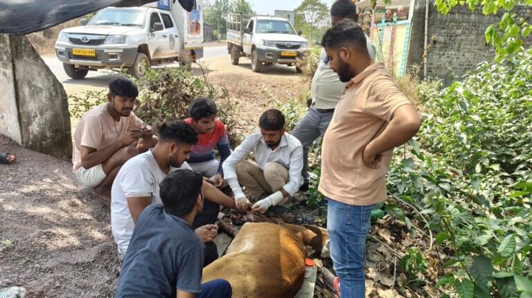 जांजगीर-चांपा, छत्तीसगढ़: निस्वार्थ भाव से बेजुबानों की सेवा में जुटे ‘गौ सेवा धाम हथनेवरा’ ने सेवा का एक और मानवीय उदाहरण पेश किया है। आज सुबह जब टीम बम्हिनडीह में घायल गौवंशों की सहायता में जुटी थी, तभी ग्राम कोसमंदा के मेन रोड पर एक दुर्घटना की सूचना मिली। एक भारी वाहन की टक्कर से एक गौ माता गंभीर रूप से घायल हो गई थी। सूचना मिलते ही गौ सेवा धाम के गौसेवक तुरंत घटनास्थल पर पहुंचे।